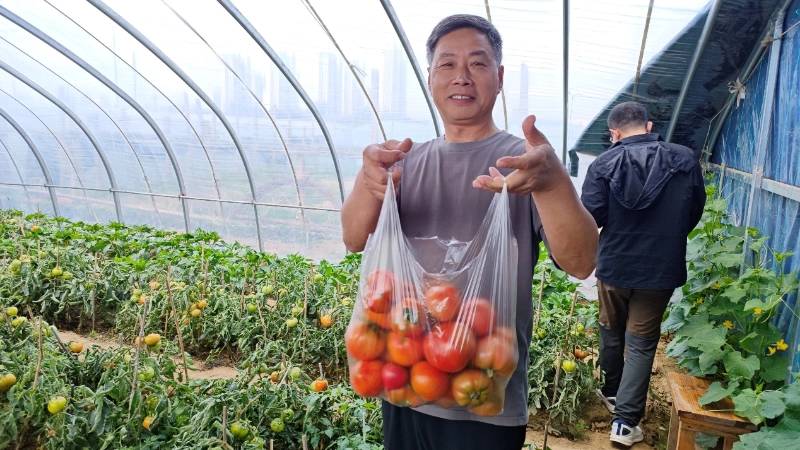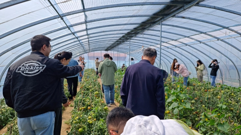 Etter lidenskapen var det en behagelig tid. Klokken 10:30 dro vi til Xiazhuang Tomatplukkehage sammen for å ta fatt på et intimt møte med naturen. Det var tilfeldigvis en klar dag, og sola skinte på jordene. De grønne grenene og bladene var dekket med knallrøde 69 tomater, som var runde og fyldige, klare i fargen, noe som fikk folk til å spytte på avstand.