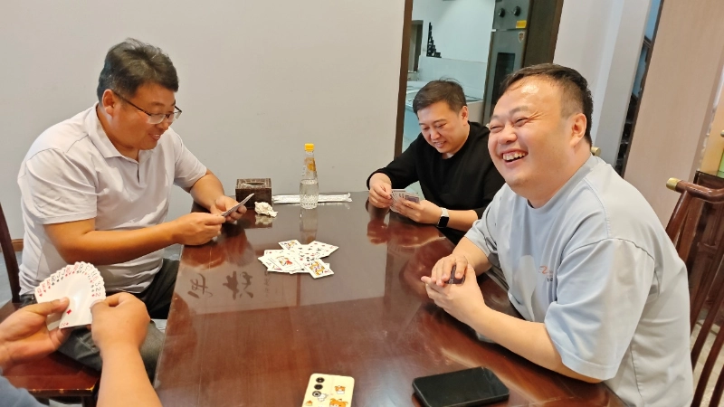 Etter en kort pause ved middagstid, klokken 12:30, flyttet vi til hotellet og startet en interessant Guandan-konkurranse. Som et teambuildingsprosjekt som er elsket av alle, tester Guandan ikke bare personlig logisk tenkning, men legger også mer vekt på det stilltiende samarbeidet mellom partnere - "Et godt kort konkurrerer ikke for øyeblikket, og partnerens stilltiende forståelse er viktigere enn personlig heltemot", som er akkurat betydningen av Guandan teambuilding.